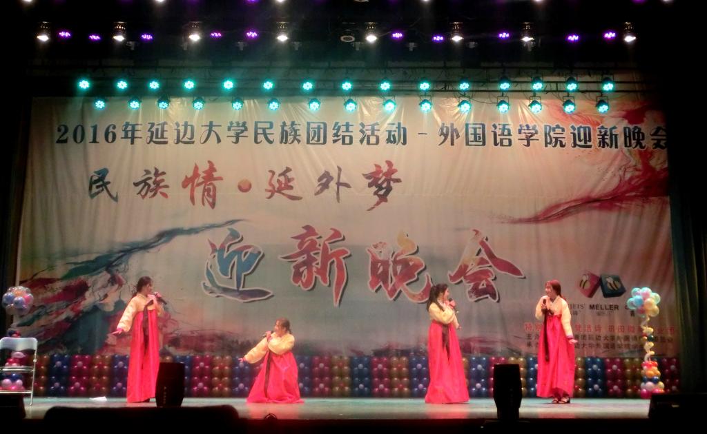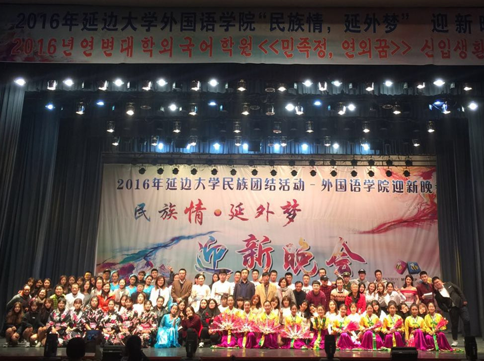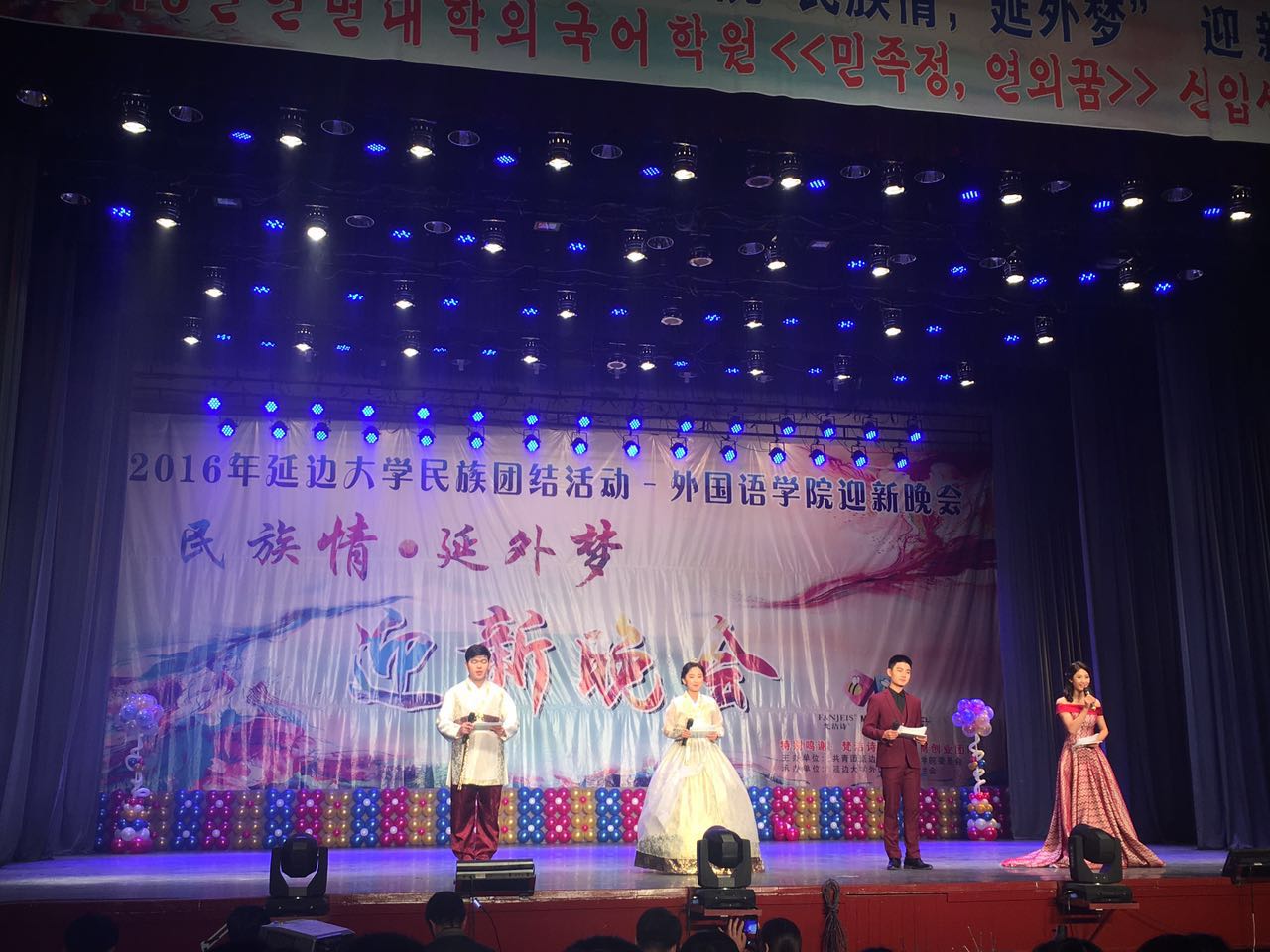2016年10月19日下午六时,英国正版365在延边大学俱乐部举办民族团结月活动之“民族情,延外梦”2016级迎新生晚会。学院党委赵亮书记、学院郑鲜日院长、学院全永男副院长、学院崔雪波副院长、关心下一代委员会刘文主任、学院办公室李光赫主任、学生工作办公室裴香花主任、学院团委金春宪书记,各专业书记主任、辅导员、班主任及任课老师出席本次晚会。