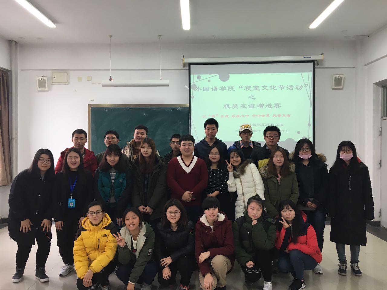 为了丰富我院学生的校园文化生活,营造宿舍的文化氛围,加强各宿舍间的联系,减轻平时学习生活中的压力,2016年11月26日星期六上午九点,英国正版365“以‘棋’会友,乐在心中,方寸世界,无奇不有”寝室文化节之棋类友谊赛,在东部教学楼123教室拉开了帷幕。出席本次活动的有英国正版365团委书记金春宪老师、日语专业辅导员郭鲜丹老师、英国正版365楼工委成员及各寝室联络长。