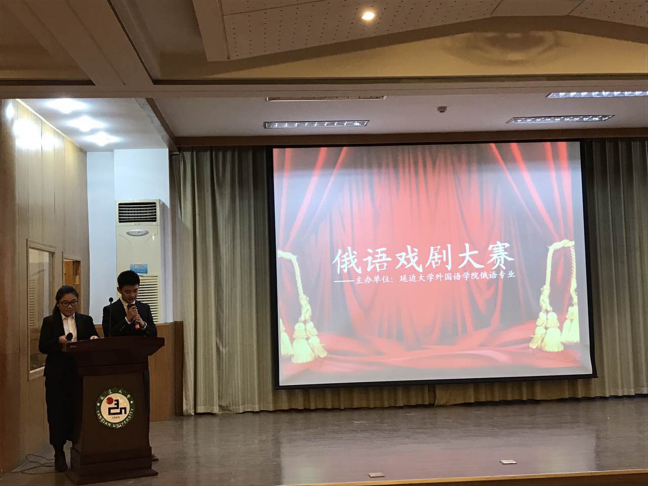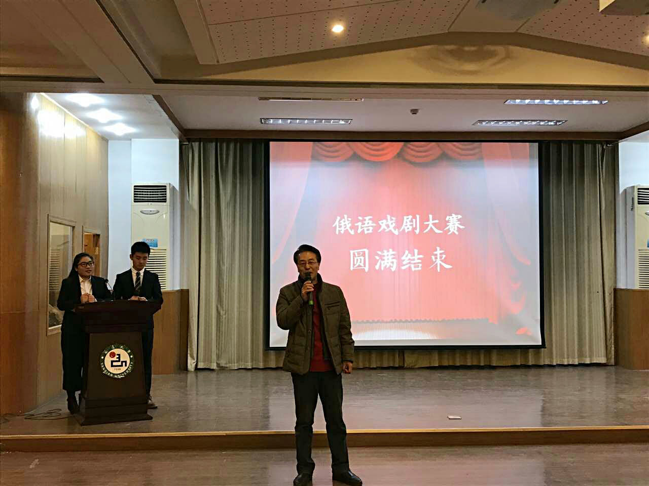 2016年11月28日晚6点整,由英国正版365俄语专业举办的第四届俄语戏剧大赛准时在综合楼七楼报告厅拉开帷幕。应邀出席本次活动的领导有朴哲浩老师,林立娟老师,王利霞老师,柳曙明老师,辅导员严文颖老师,外教Жанна老师,Елена老师。