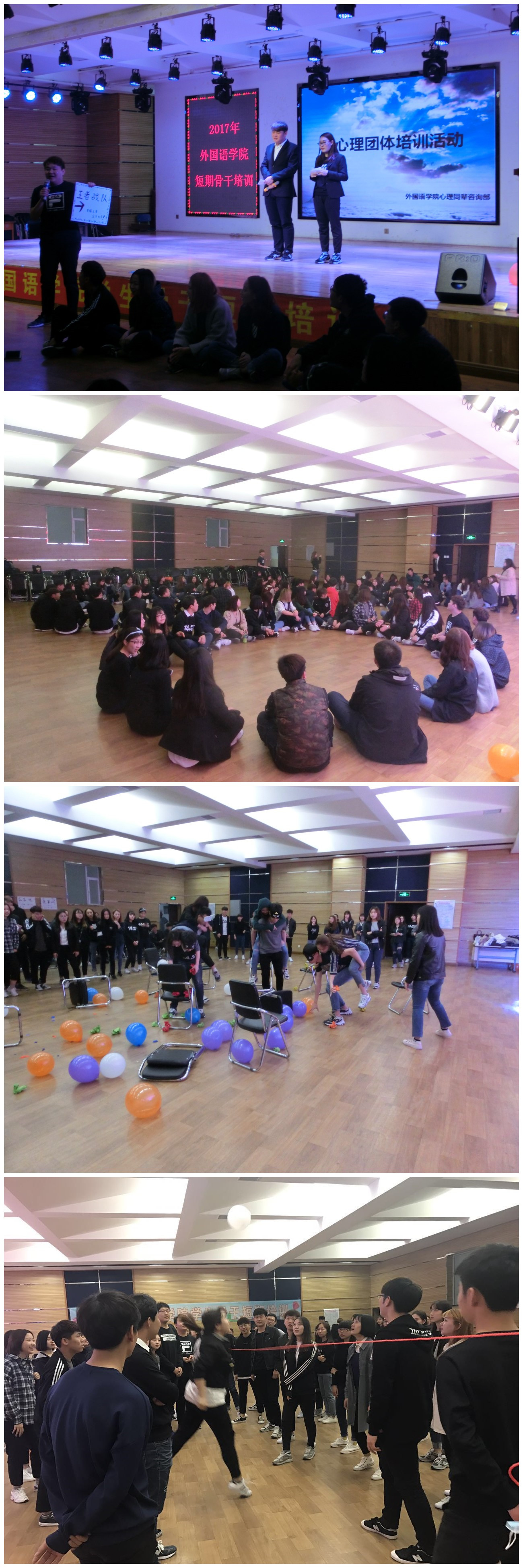 本次培训中不仅有讲座培训、心理成长团队辅导,还组织了学生干部经验交流会、学生职能说明会、联谊会等活动,从全方位培养学生骨干,促进学生干部们的全面发展。