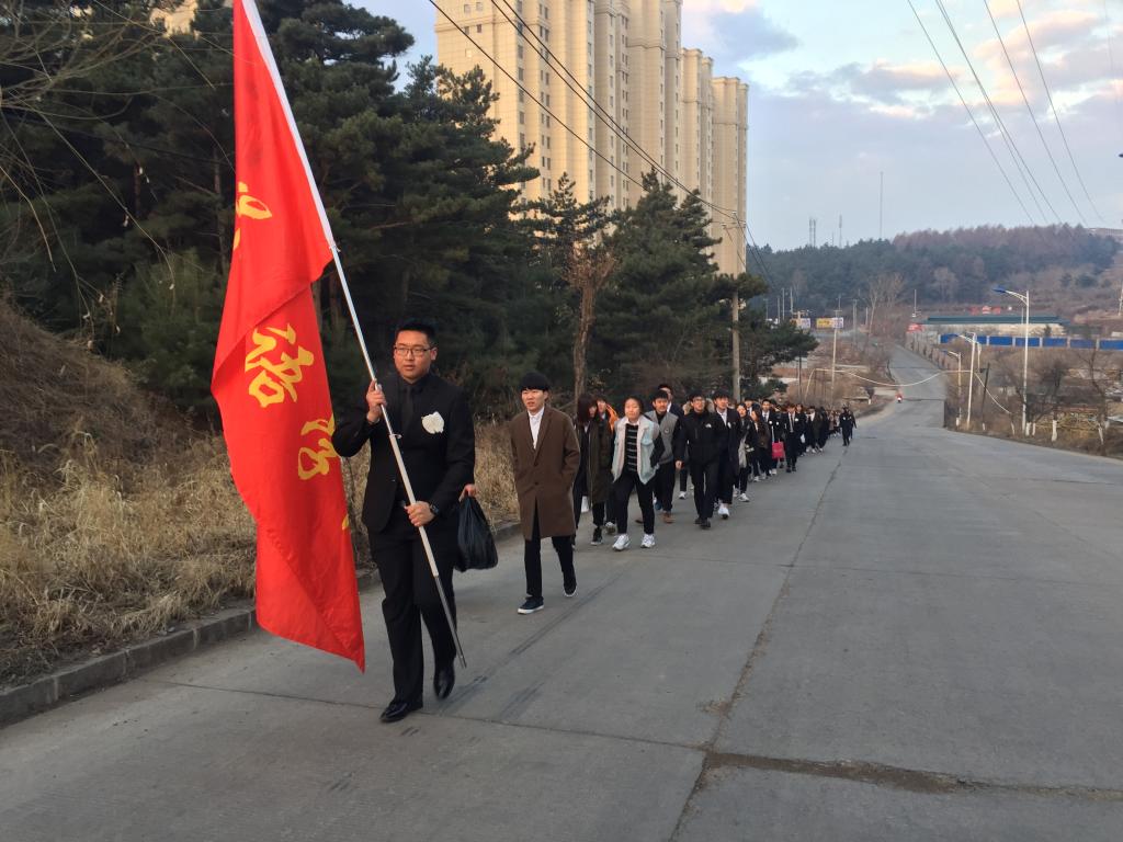 3月31日早上5点30分到达烈士陵园,在团委副书记单强的主持下扫墓活动正式开始。首先由两名同学向纪念碑敬献花圈,代表着新一代青年学生对烈士们的憧憬与尊重。然后全体成员默哀致敬表达对革命先烈的深切哀悼和无限的敬仰之情。随后大家纷纷敬献自己的小白花,并由元景明同学在纪念碑下发表演讲,歌颂伟大先烈们的光荣事迹让同学们深有感触,认识到自己身上肩负的历史重任。最后活动以团委书记金春宪老师的总结讲话宣告圆满结束。