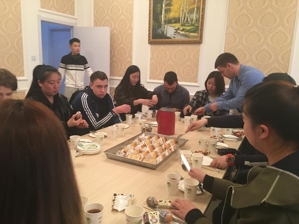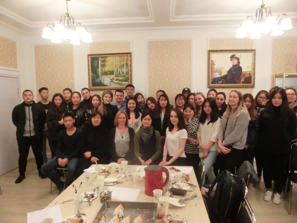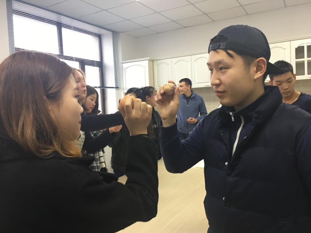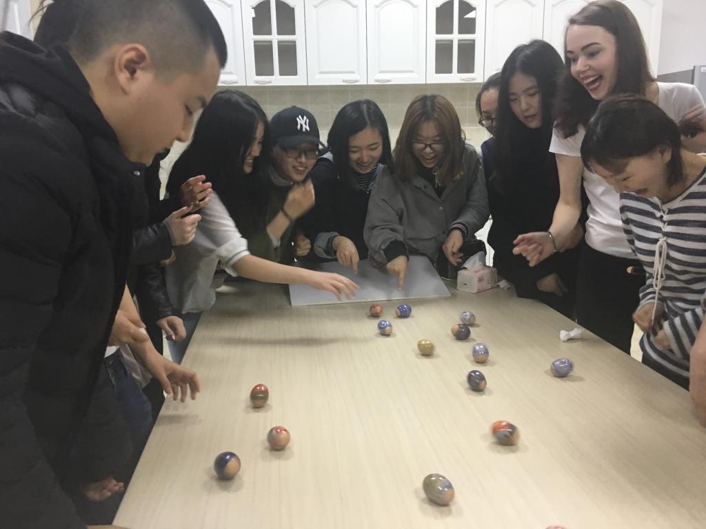 首先由Елена老师讲述关于俄罗斯复活节的由来以及复活节的传统习俗,并向在场的中国学生进行提问,回答正确者可自行抽取获得礼物。每一次提问,都将现场气氛推向高潮,同学们纷纷举手,踊跃作答,同时俄罗斯留学生热情的给予帮助,气氛十分和谐。紧接着,老师讲述复活节彩蛋的意义以及制作的方法,同学们都充满兴致的制作着自己的彩蛋,并在老师的带领下,用彩蛋做游戏,最终获胜者赢得奖品。除此之外,同学们一起品尝了为复活节所烤制的面包,以及咖啡与茶,大家其乐融融,彼此都愉快的交谈,笑声连连,同学之间还留了微信等联系方式。活动逐渐接近尾声,每个人都对此次活动阐述了自己的感想,并希望以后多举办这样交流的活动,增进友谊,让彼此互帮互助,加强沟通。