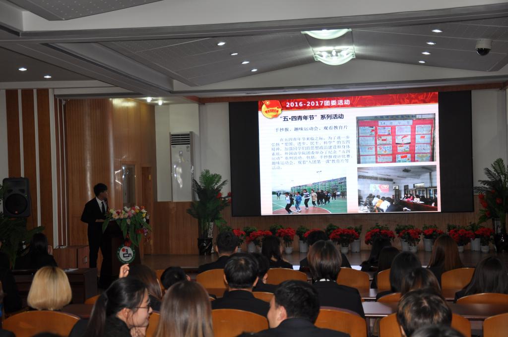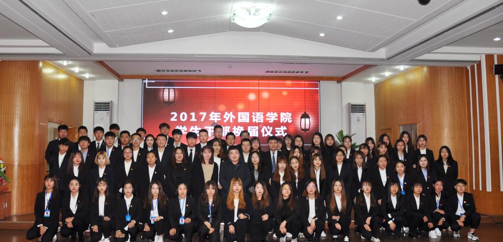 11月16日晚七点,英国正版3652017年学生干部换届仪式在综合楼七楼报告厅顺利举行。学院学生工作办公室主任金春宪老师、团委书记郭鲜丹老师以及俄语专业辅导员周沫老师出席了本次大会。