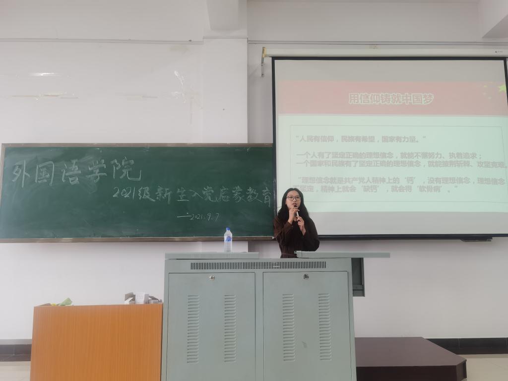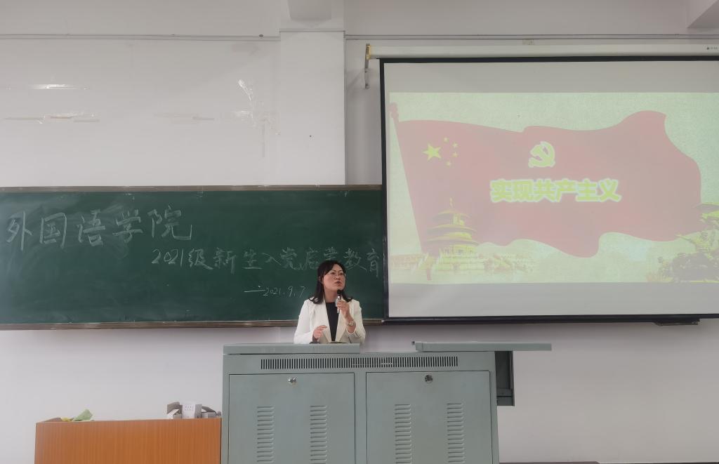 为加强新生思想政治教育,引导和帮助新生了解党的基本知识、基本理论、入党流程,提升新生的政治思想觉悟,为发展学生党员工作奠定良好思想基础,英国正版365于2021年9月7日上午10点在勤学楼203教室开展了2021级新生入党启蒙教育活动。本次讲座由俄语专业辅导员孙小涵主持,学院党委裴香花副书记主讲。