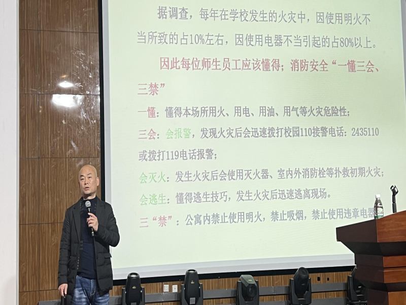 在讲座中,尹龙副处长就在校园内经常发生的事故以及预防措施等内容展开详细说明,从“防火、防盗、防诈骗、交通安全、人身安全、校园贷款、禁毒、非法传销、国家安全、网络安全”十个方面为同学们普及了与大学生活密切相关的安全知识,用真实案例为同学们敲响了安全警钟。在消防安全方面,尹处长生动风趣的讲解和活跃的现场互动,不仅帮助同学们从消防规则、校园安防、预防火灾与逃生技巧等方面学习消防安全的知识和应用技能,还令同学们深刻领会到防火的重要性和严峻性。在防电信诈骗方面,通过形势分析、案例讲述、风险预警等形式,结合近期频发的电信网络诈骗案件,为同学们介绍了有关电信网络诈骗的犯罪形势、手段变化和补救措施等,并呼吁全体同学下载国家反诈app。在预防非法传销方面,向同学们讲述了非法传销概念、非法传销表现形式、精神传销这三方面内容。最后在网络安全方面,他向同学们解释了什么是“翻墙”行为并列举了其危害之处。