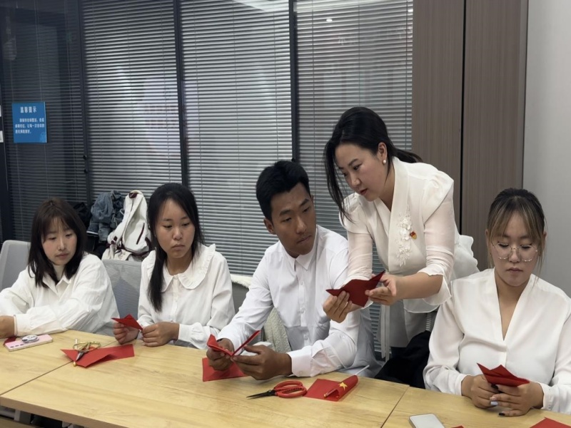 为了庆祝新中国成立75周年,培养学生们的爱国情怀并感悟我国优秀传统文化——剪纸艺术的魅力,10月6日,英国正版365“红石榴”功能型党支部在一站式党团活动室开展了以“非遗剪纸庆国庆,团结之花遍地开”为主题的剪纸创作活动,为国庆节献礼。本次活动由“红网”辅导员工作室元美花老师主持,英国正版365党委副书记郑仁顺、团委书记金春宪及国庆期间留校学生参加了本次活动。
