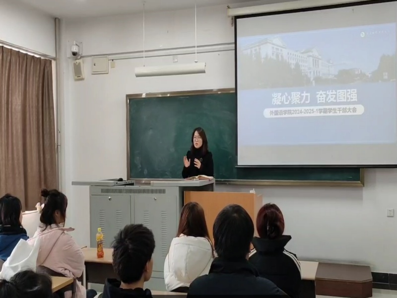 会上,郑书记围绕班团建设、学风建设、心理健康、体育锻炼、就业规划以及安全维稳等多方面提出要求。她通过列举2024届毕业生就业状况、2023年度学生图书借阅情形、科技竞赛参与情况、论文发表成果、体能测试数据以及学业预警信息等,深入剖析了当前大学生普遍存在的问题。郑书记着重强调,广大学生干部务必积极发挥带头模范作用,踊跃引领广大青年学生投身各项活动,在实践中锤炼自我,增强就业竞争力,全力成为思想建设的“传播者”、学风建设的“领航者”、学生管理的“执行者”、集体建设的“服务者”,为学校“双一流”学科建设奉献青春力量。